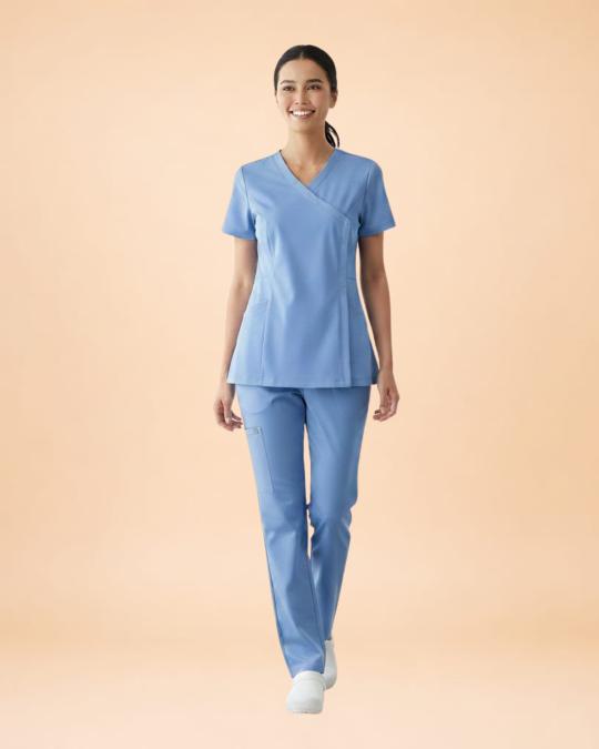 Women's Crossover V-Neck (Light Blue) Scrub